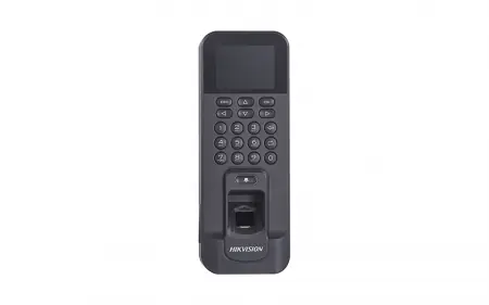 The DS-K1T804 Series of optical IP-based fingerprint access control terminals feature multiple advanced technologies, including fingerprint recognition, Wi-Fi, LCD display screen, and time attendance. The DS-K1T804 Series is designed with a 2.4-inch LCD display screen and is equipped with an optical fingerprint recognition module.